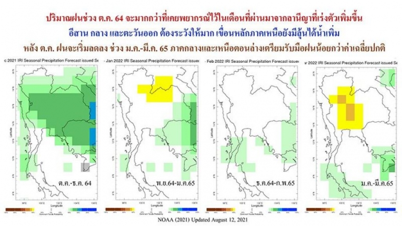 และตะวันออก ต้องระวังให้มาก เขื่อนหลักภาคเหนือยังมีลุ้นได้น้ำเพิ่ม หลัง ต.ค. ฝนจะเริ่มลดลง ช่วง ม.ค.-มี.ค. 65 ภาคกลางและเหนือตอนล่างเตรียมรับมือฝนน้อยกว่าค่าเฉลี่ยปกติ