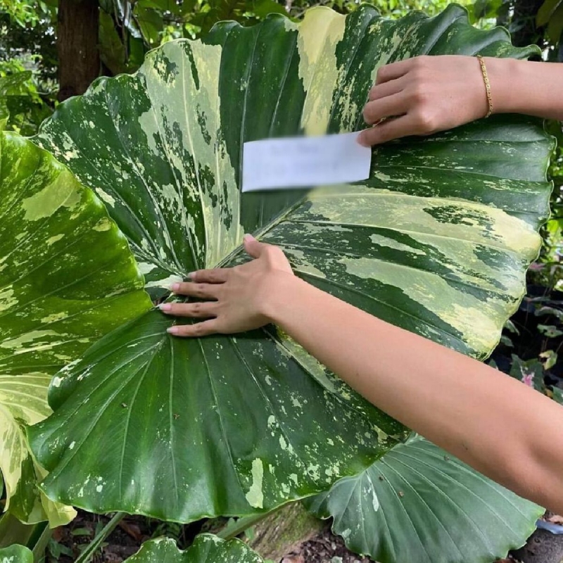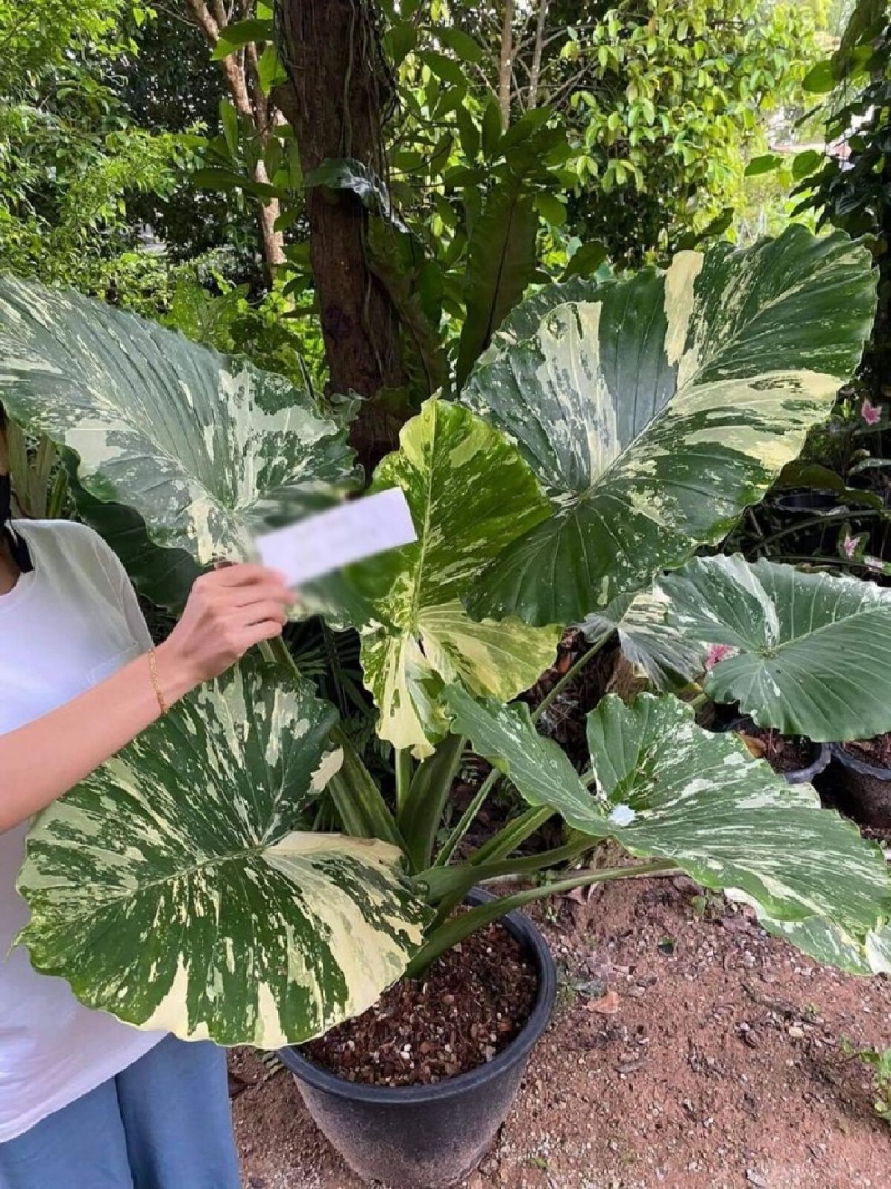 ขออนุญาตเปิดเสนอราคา ชื่อต้นไม้ Acolocasia gageana variegated หูช้างด่างขาว ใหญ่มาก อลังการสุด 8 หน่อแทง ไม่เคยรื้อใดๆใครได้ไป คุ้มมากกกกก ความสูง คนในรูปสูง 160cm รูปแบบการจัดส่ง ส่งถึงที่ หรือตามตกลง (ต้นไม้อยู่จันทบุรี) ราคาไม่โดนใจ ขออนุญาตปิดเก็บนะคะ