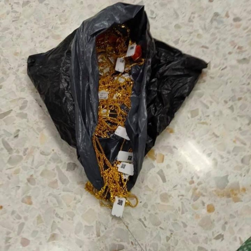 เมื่อได้ทองคำ 1 ถาดใหญ่ ซึ่งเป็นสร้อยทอง น้ำหนัก 1 สลึง และครึ่งสลึง จำนวน 43 เส้น น้ำหนักรวมกว่า 30 บาท