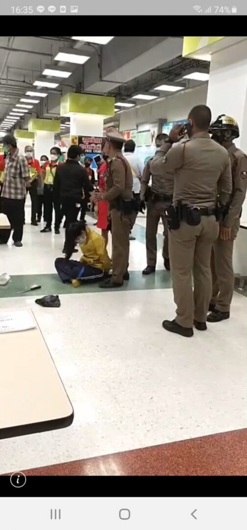 จึงได้วิ่งหลบหนีออกไปทางหน้าห้าง แต่ก็ได้ถูกตำรวจสายตรวจควบคุมตัวเอาไว้ได้