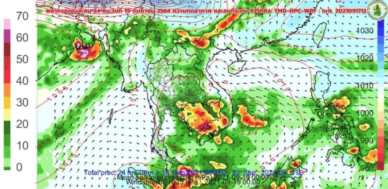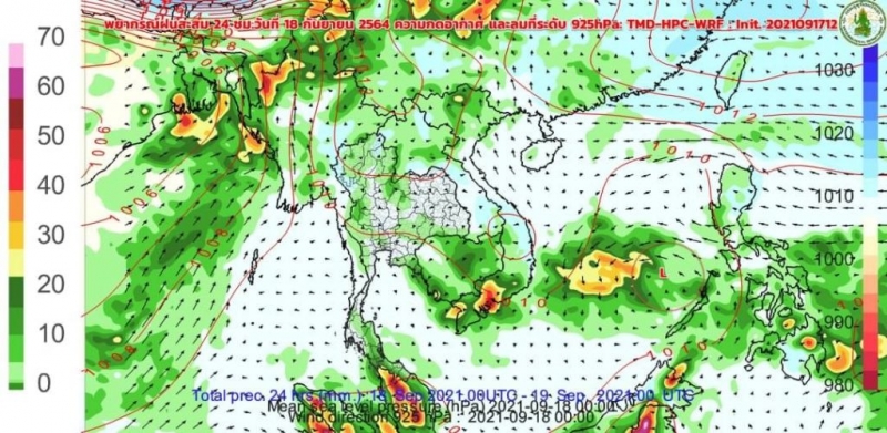 จาก TMD-HPC-WRF 2021091712 :18-19 ก.ย.64 #ฝนน้อยลง แต่ฝนยังเกิดขึ้นทางด้านตะวันตก