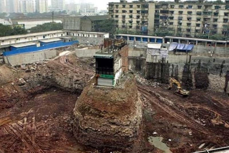 และแน่นอนว่าเป็นไปไม่ได้ที่ผู้สร้างจะยอมรับเงื่อนไขที่เขาเสนอมา เพราะในตอนแรกผู้สร้างเสนอค่าชดเชยให้ 1 ล้านหยวน (ราว 4.5 ล้านบาท) หลายบ้านบริเวณนั้นยินดีรับเงินดังกล่าวไว้และย้ายออกไป เหลือเพียงบ้านหลังนี้ที่ไม่ยอมย้ายออกไป ปัจจุบันผ่านไปแล้วกว่า 17 ปี สภาพบ้านกลายเป็นดังภาพที่เห็น
