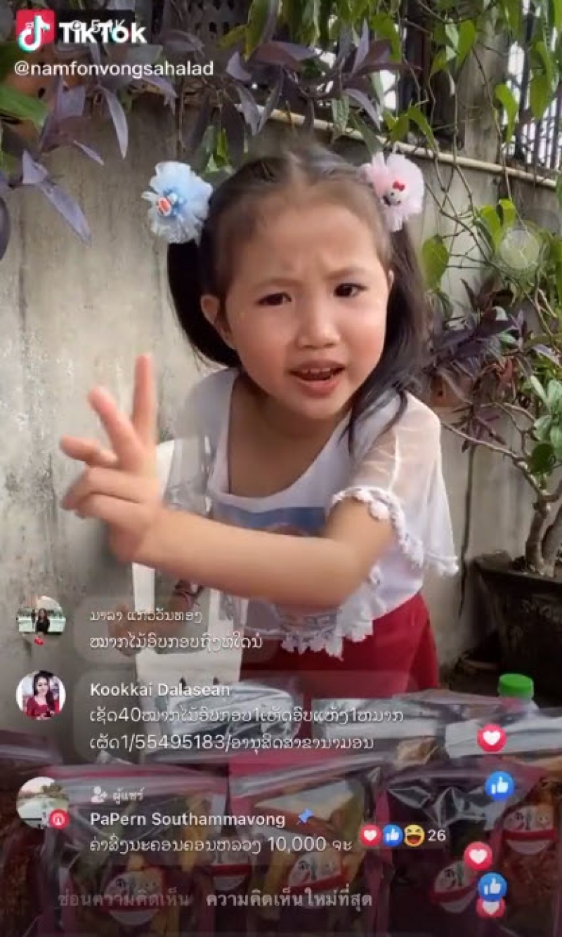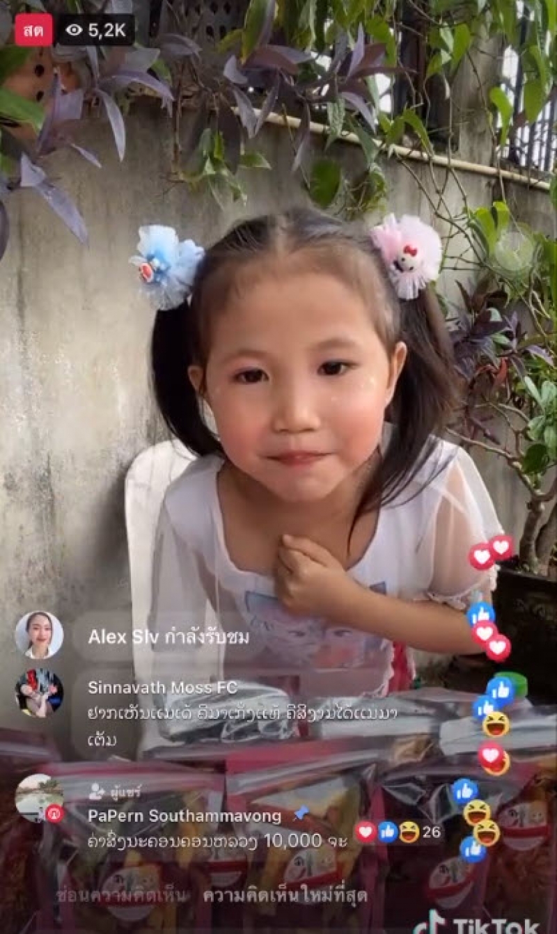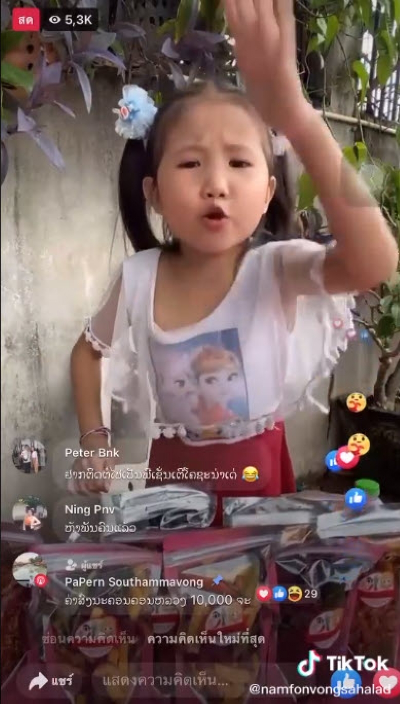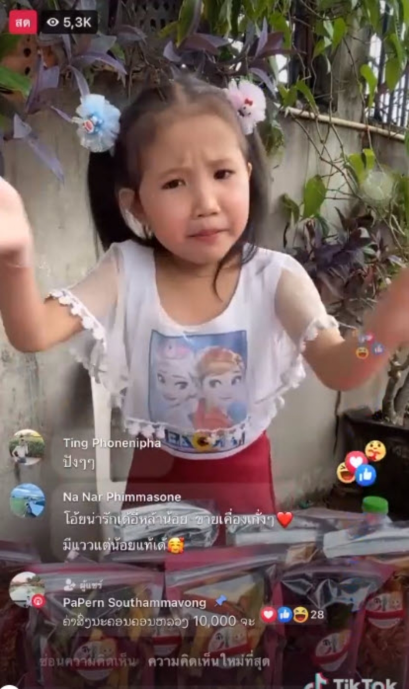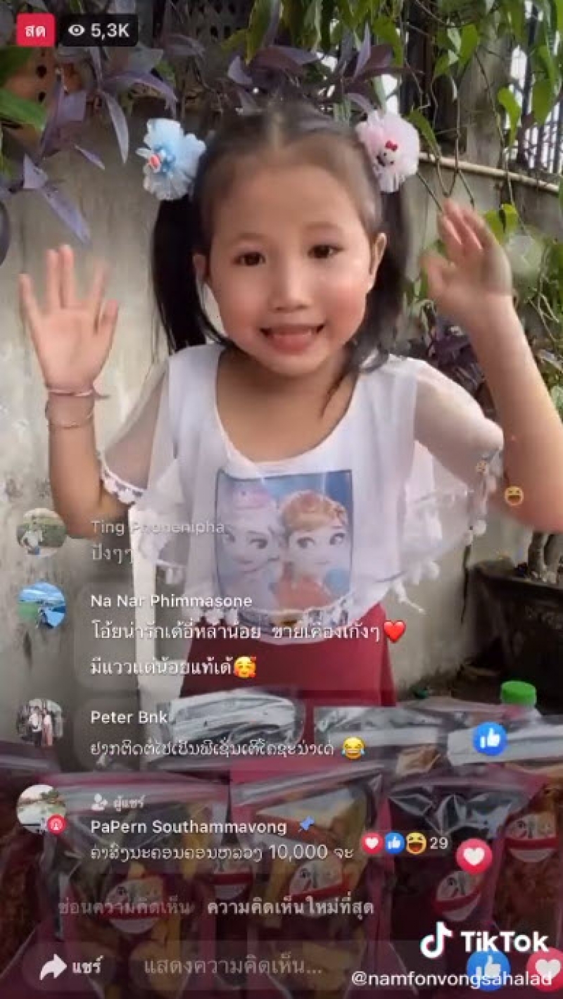 ฃรู้เลยว่ามาจาก สปป.ลาว เสียงเจื้อยแจ้วน่ารักแบบนี้ ทำลูกค้าแห่มาเอฟกันถล่มทลาย ปกติเวลาน้องไลฟ์สดขายของ ก็มีผู้เข้ามาชมมากกว่า 5 พันคน