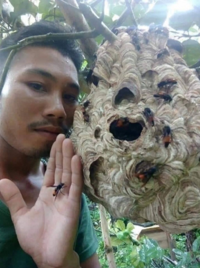 หนุ่มลองดีเซลฟี่ กับรังต่อยักษ์ หวังได้ภาพหล่อๆ