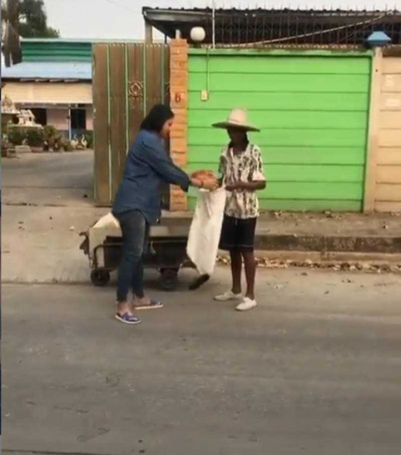 เรียกได้ว่าเป็นเรื่องราวที่กำลังพูดถึงกัย และต่างเข้ามาแสดงความคิดเห็นกันเป็นจำนวนมาก หลังงหญิงสาวผู้มีน้ำใจรายหนึ่งได้นำปลามาให้คุณลุงที่ยืนอยู่ข้างทาง แต่ขณะที่กำลังจะนำปลาไปให้คุณลุงที่ถือกระสอบรออยู่ กลับกลายเป็นว่ากระสอบดันรั่วจนปลาทั้ง 2 ตัว ตกลงมาบนพื้นถนนอย่างไม่ตั้งใจ