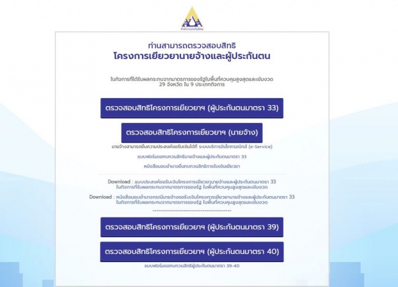 หากมีคุณสมบัติครบ เป็นผู้ประกันตนสัญชาติไทย อยู่ในพื้นที่ 13 จังหวัด และอยู่ใน 9 กลุ่มกิจการ แต่ไม่ได้รับสิทธิ สามารถเช็คสิทธิประกันสังคม ยื่นทบทวนสิทธิเยียวยาได้ที่ https://www.sso.go.th/eform_news/ ภายในวันที่ 31 ต.ค.64