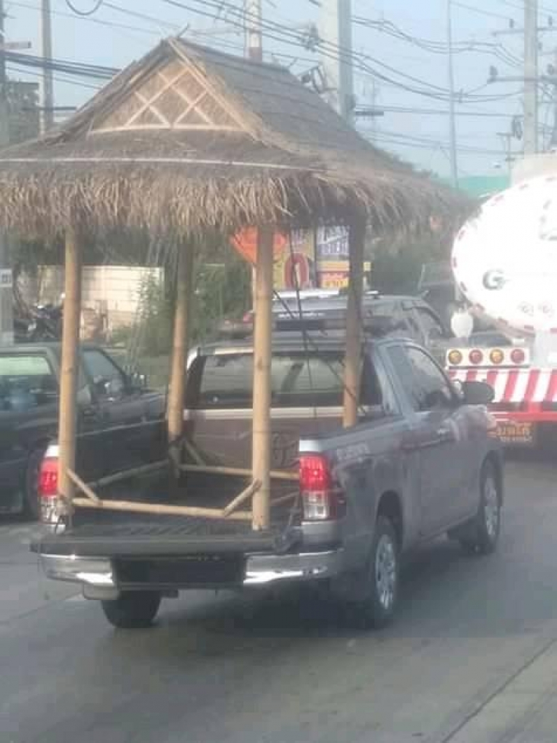 หนุ่มสงสัย เจอรถกระบะ ขนกระท่อมหลังเล็กมาแต่ไกล