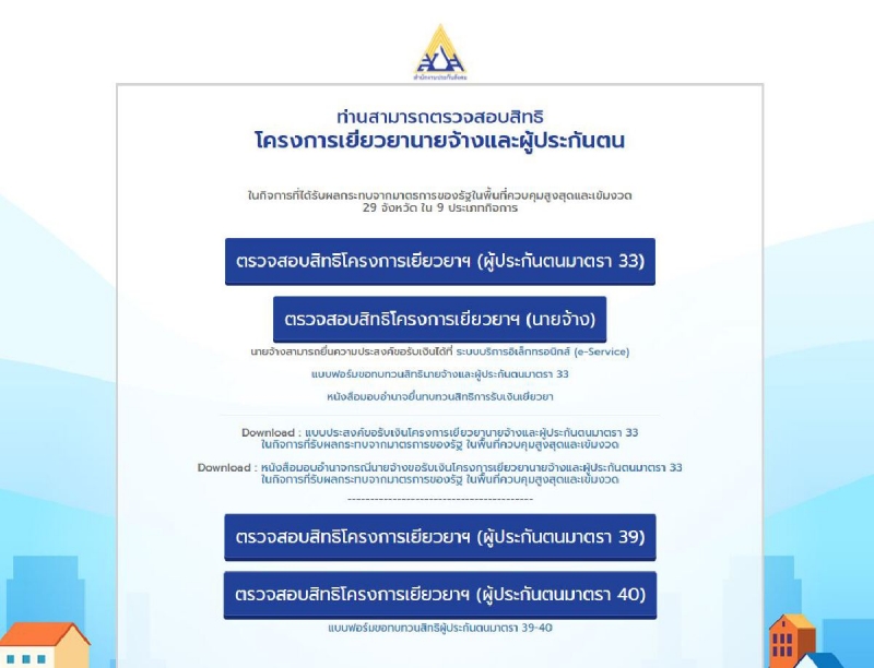 และอยู่ในพื้นที่ได้รับการเยียวยาแต่ไม่ได้รับเงินเยียวยา สามารถยื่นแบบทบทวนสิทธิ โดยดาวน์โหลดเอกสารแบบคำขอทบทวนสิทธิเยียวยาได้ที่เว็บไซต์สำนักงานประกันสังคม www.sso.go.th และกรอกข้อมูลให้ครบถ้วนส่งมาทางไปรษณีย์ลงทะเบียนถึงสำนักงานประกันสังคมที่สะดวกใน 29 จังหวัดสีแดงเข้มได้ตั้งแต่บัดนี้ถึง 31 ตุลาคมนี้ หรือสอบถามรายละเอียดเพิ่มเติมได้ที่สายด่วน 1506 กด 1 สำนักงานประกันสังคม