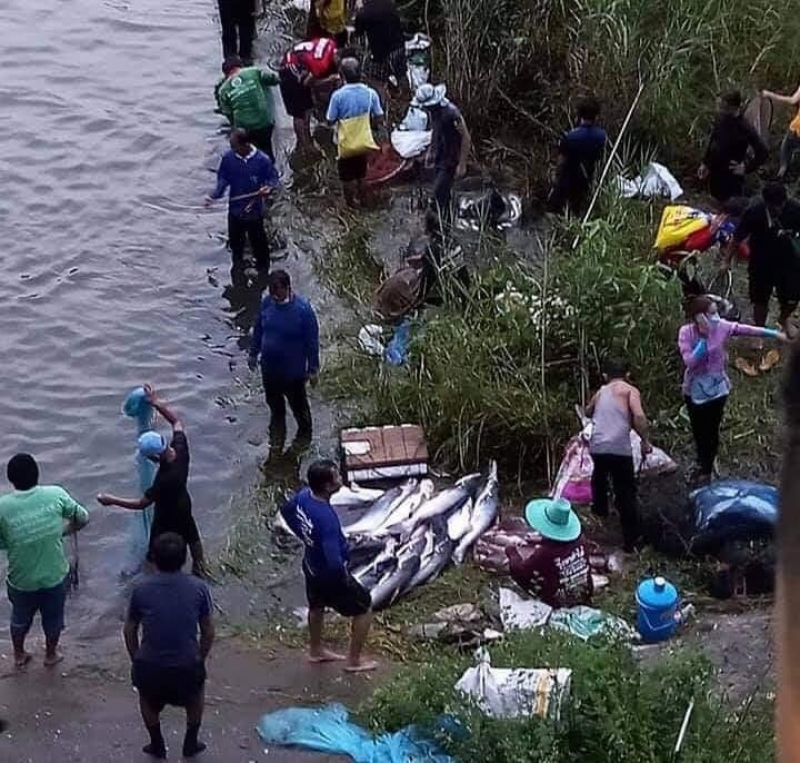 ซึ่งหลังจากบานประตูปิดลง ชาวบ้านนับพันคนต่างนำอุปกรณ์ที่เตรียมไว้ลงจับปลาหลังเขื่อน