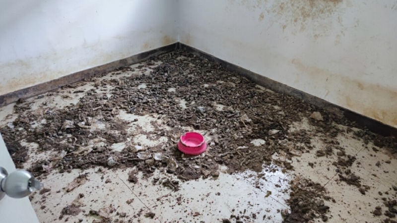 ถัดมาก็เป็นโซนห้องครัว ที่อุปกรณ์เครื่องปรุงต่าง ๆ ยังอยู่ครบ บางอย่างเหมือนไม่ได้ใช้ แต่ใต้โต๊ะเต็มไปด้วยเศษขยะ จนคุณแปะก็ยังบอกว่า คิดไม่ออกเหมือนกันว่าเขาจะรังสรรค์อาหารอะไรออกมาได้ จากนั้น คุณแปะก็ขึ้นไปชั้น 2 ของบ้าน และก็เจอกับกอง ที่มุมหนึ่งของบ้าน ซึ่งคุณแปะบอกว่า ผู้เช่าก็แจ้งแล้วว่าต้องการจะเลี้ยง และผู้เช่าก่อนหน้าก็เลี้ยงสุนัข แต่เขาเลี้ยงดี พอออกไปบ้านก็ไม่ได้เสียหาย คนพันธุ์ไหนกันที่ปล่อยแล้วไม่เก็บขนาดนี้