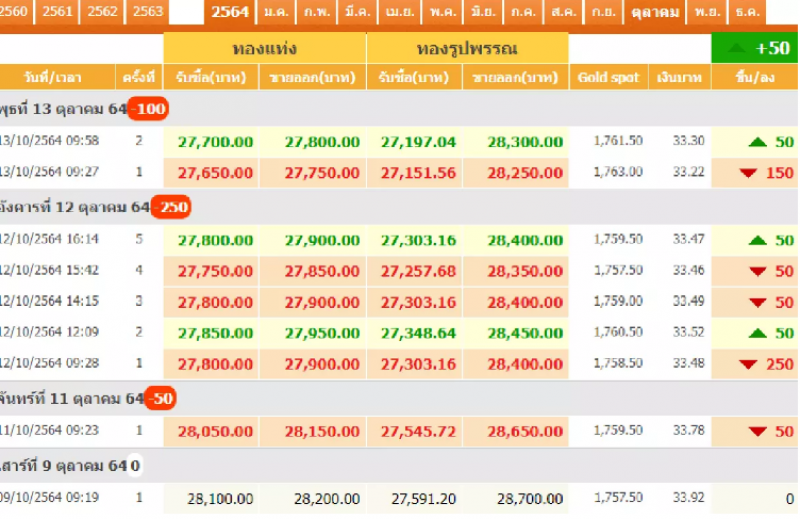 13 ตุลาคม 2564 (ประกาศครั้งที่ 2)ปรับขึ้น 50 บาท