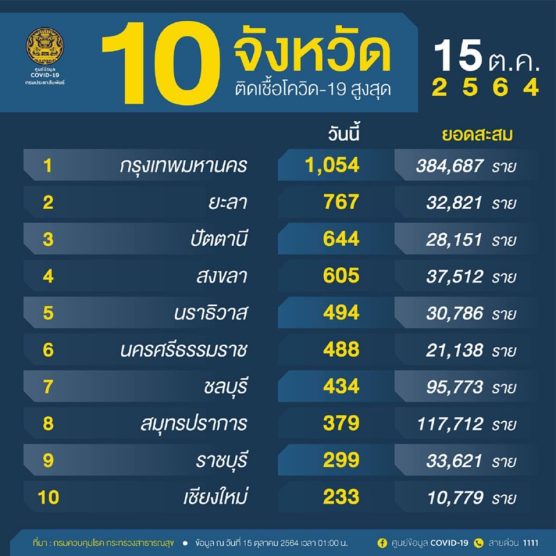 อัพเดทต่อเนื่อง เกาะติดสถานการณ์cvวันนี้ 15 ต.ค. 64 เกาะติดความคืบหน้า จากศูนย์บริหารสถานการณ์(ศบค.) ตรวจสอบ อัพเดท 10 จังหวัดอันดับพบผู้ติดเสูงสุด