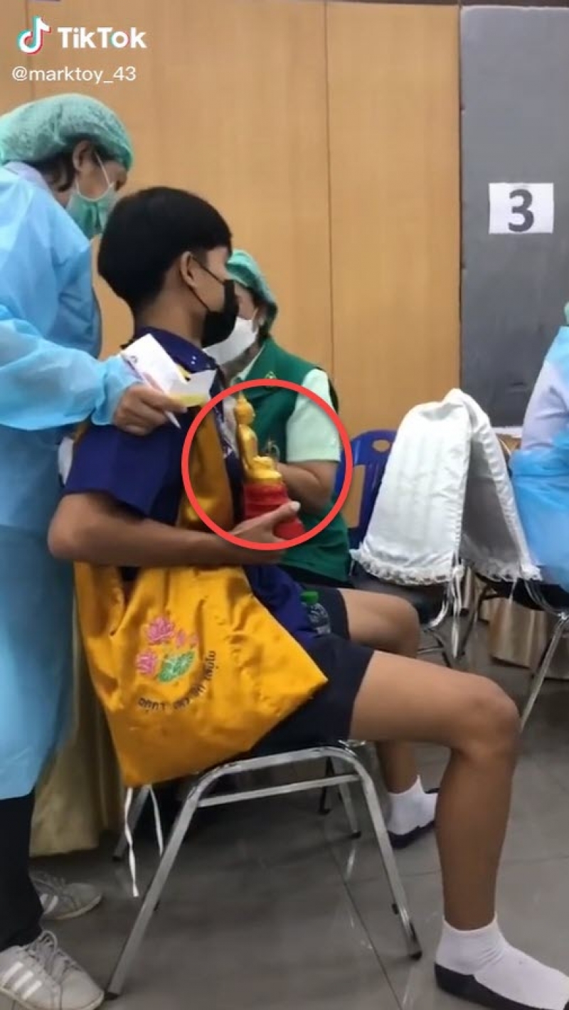 เรียกได้ว่าเป็นอีกหนึ่งเรื่องราวที่โลกออนไลน์เข้ามาแสดงความเหนกันเยอะมากๆเลยจ้า หลังมีผู้ใช้ Tiktok รายหนึ่งโพสต์คลิป นักเรียนชายกำลังจะเข้ารับ ไฟเซอร ที่เจ้าตัวจัดใหญ่สะพายย่าม อุ้มพระพุทธรูป แถมห้อยพระพุทธรูปเต็มคอ เรียกว่าใครเห็นก็ต้องอมยิ้ม