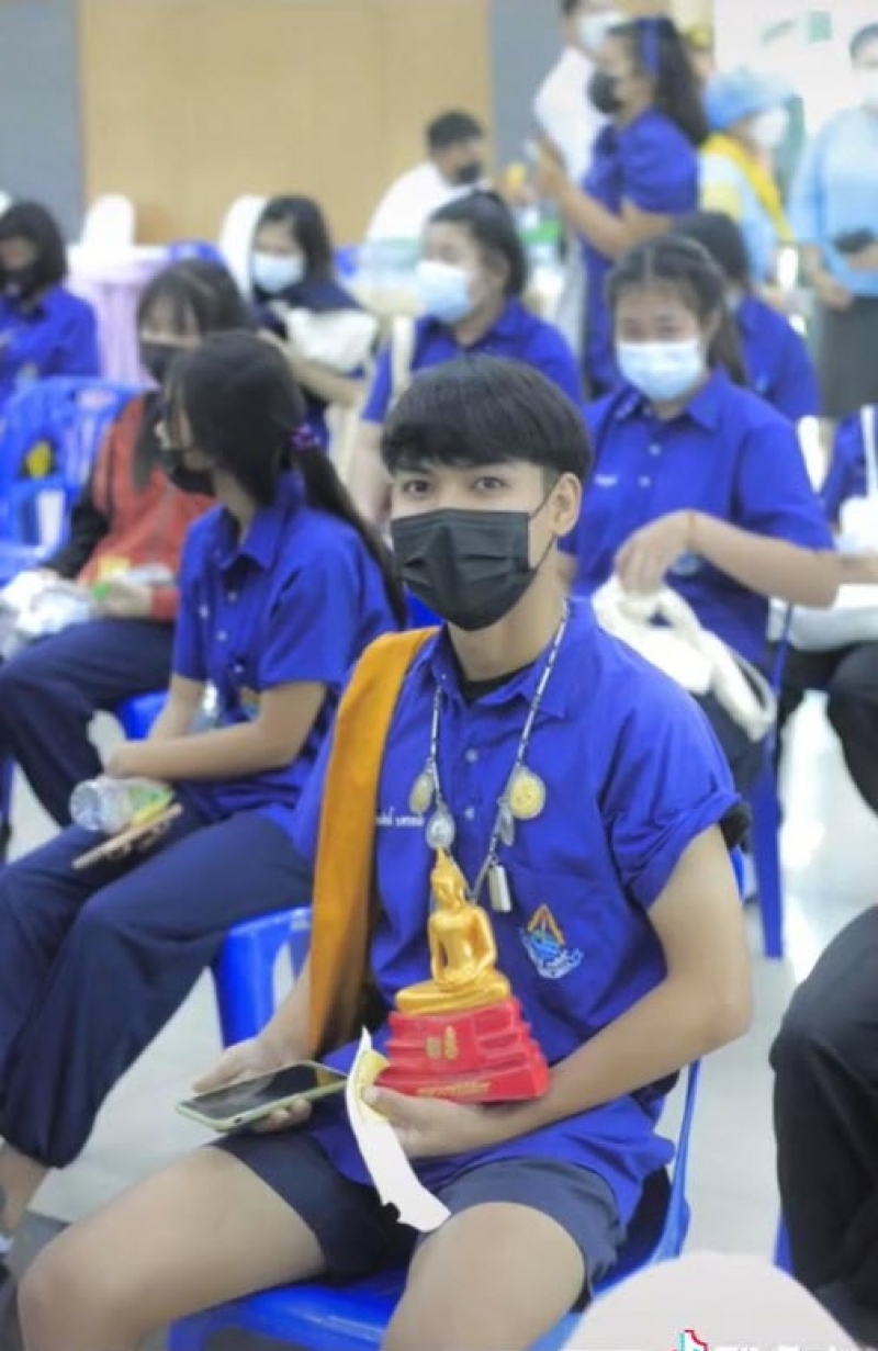 นร.ชายรับไฟเซอร์ สะพายย่ามอุ้มพระพุทธรูป หวังคุณพระคุ้มครอง