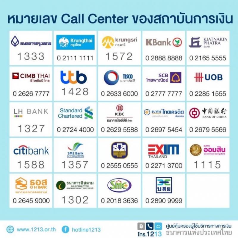 4.หากใครพบความผิดปกติของบัญชีธนาคารของตนเอง สามารถติดต่อสถาบันการเงิน เพื่ออายัดบัตร หรือ บัญชีโดยทันที ตามเบอร์โทรดังต่อไปนี้ตามภาพ