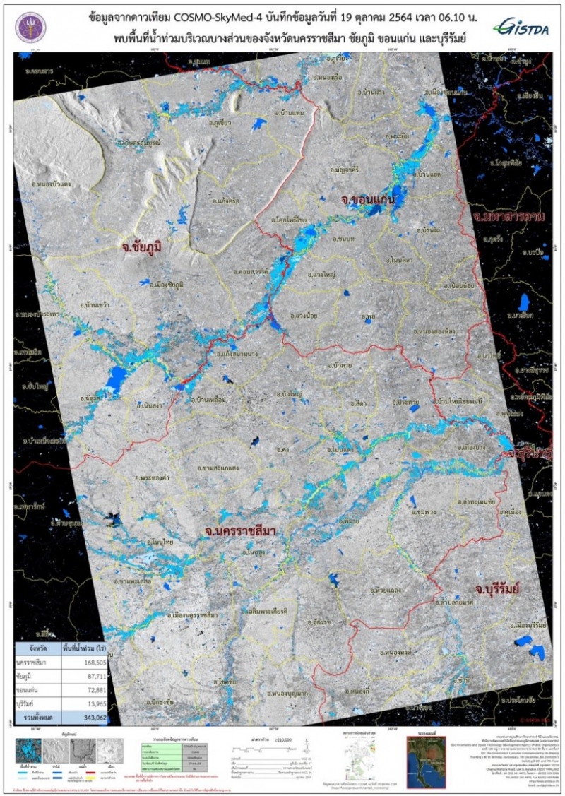 GISTDA ใช้ดาวเทียม COSMO-SkyMed-4 ติดตาม สถานการณ์น้ำท่วม ขังในเขตพื้นที่ 4 จังหวัดภาคตะวันออกเฉียงเหนือ
