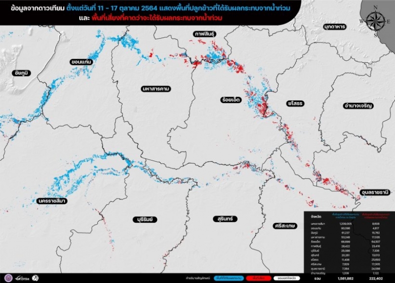 19 ต.ค.2564 สำนักงานพัฒนาเทคโนโลยีอวกาศและภูมิสารสนเทศ (องค์การมหาชน) GISTDA เผยภาพข้อมูลจากดาวเทียม