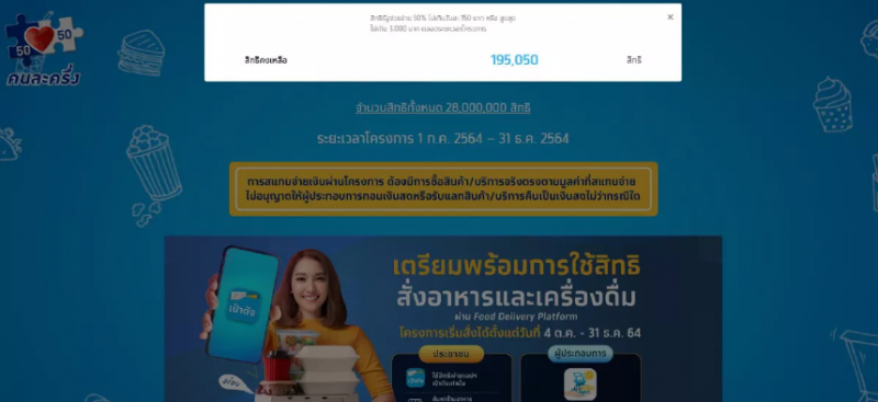 ล่าสุดนั้น ณ วันที่ 19 ต.ค.64 พบว่า โครงการคนละครึ่ง เฟส 3 ยังมีสิทธิคงเหลืออยู่ราว 1.95 แสนสิทธิ โดยประชาชนยังสามารถลงทะเบียนรับสิทธิได้จนกว่าจะเต็ม