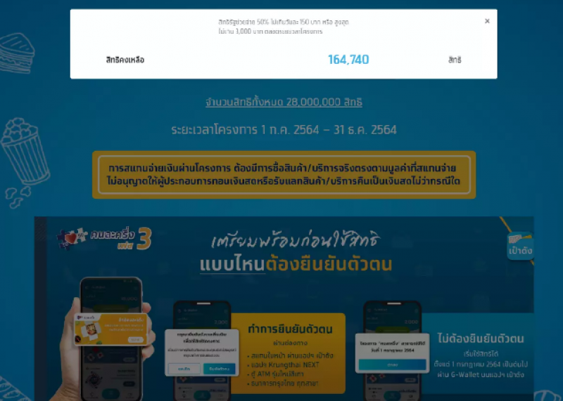 และหากผู้สนใจสมัครรับสิทธิ์โครงการคนละครึ่งตอนนี้ยังสามารถลงทะเทียนได้อยู่ แต่ต้องรีบเสียหน่อย เพราะสิทธิ์เริ่มลดน้อยลงแล้ว