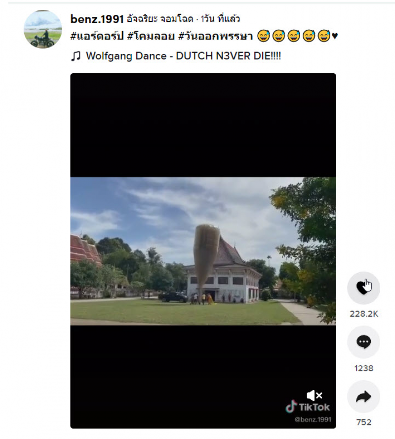 เรียกได้ว่าเป็นอีกหนึ่งเรื่อราวที่โลกออนไลน์เข้ามาแสดงความเห็น กันเป็นจำนวนมาก หลัง ทางด้านผู้ใช้ TikTok @benz.1991 ได้โพสต์การปล่อยโคมลอยในวันออกพรรษา ที่พอควันเข้าไปเต็มๆ ลักษณะของโคมลอยทำไมคล้ายขวดปลาร้าเลย เป็นยังไงนั้นตามไปดูกันเลย
