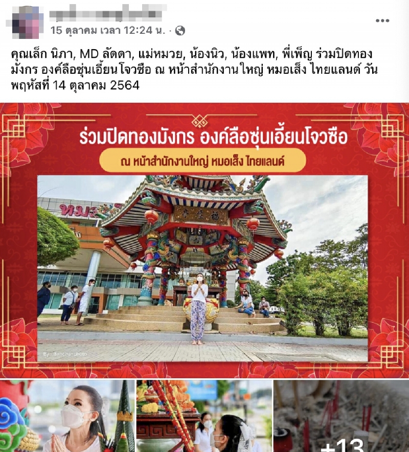 คุณเล็ก นิภา MD ลัดดา แม่หมวย น้องนิว น้องแพท พี่เพ็ญ ร่วมปิดทองมังกร องค์ลือซุ่นเอี้ยนโจวซือ ณ หน้าสำนักงานใหญ่ หมอเส็ง ไทยแลนด์