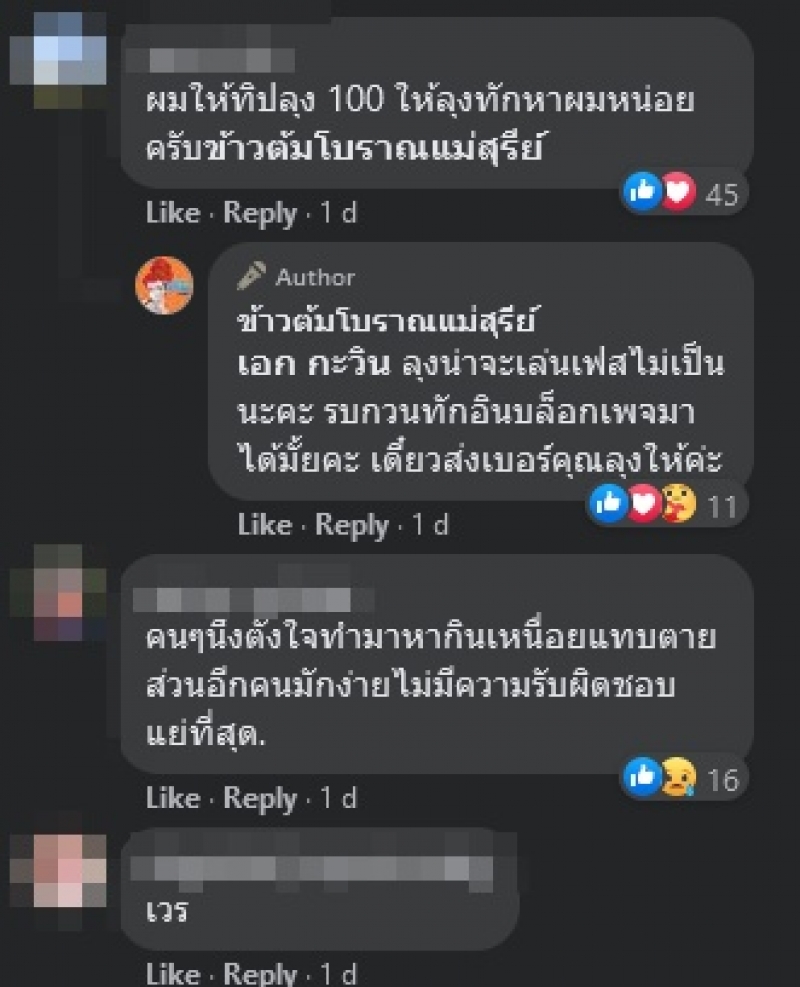 เรียกได้ว่าเป็นอีกหนึ่งเรื่องราวที่ถูกวิพากษ์วิจารณ์อย่างหนัก เมื่อเฟซบุ๊ก ข้าวต้มโบราณแม่สุรีย์ ได้มีการโพสต์แฉลูกค้ารายหนึ่งที่สั่งอาหารผ่านไรเดอร์ รวมทั้งสิ้น 150 บาท แต่สุดท้ายกลับไม่มีการรับของว่า หลังจากส่งของให้ไรเดอร์เอาไปส่ง ทางไรเดอร์โทรศัพท์ติดต่อลูกค้าไม่ได้เลย ตั้งแต่ 5 โมงเย็นจนถึง 1 ทุ่มครึ่ง โทรศัพท์ไปหารวมกันถึง 30 ครั้งก็ไม่สำเร็จ