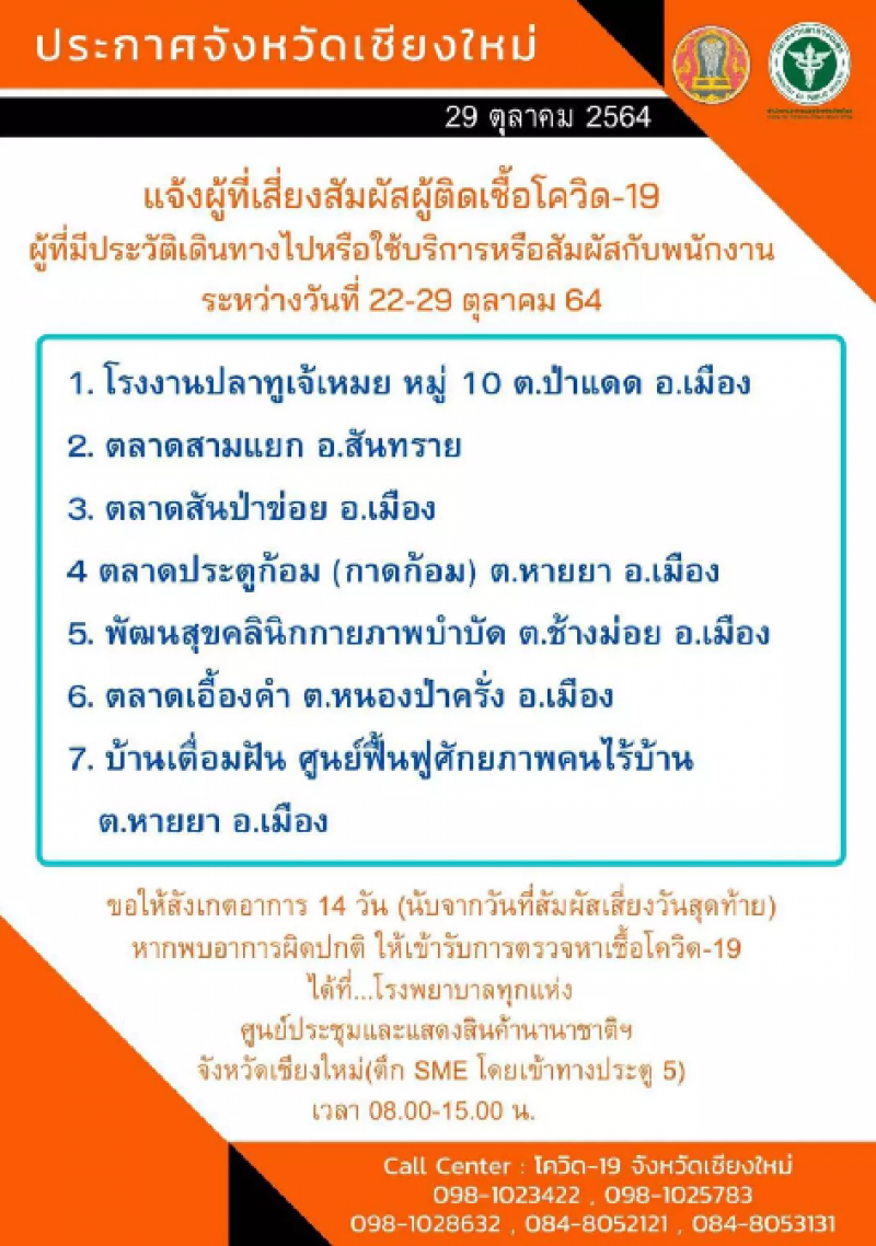 ระหว่างวันที่ 22-29 ตุลาคม 2564 ให้สังเกตอาการตนเอง 14 วัน