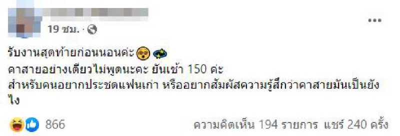 เป็นเรื่องราวที่โลกออนไลน์เข้ามาแสดงความเห็นกันเยอะมากๆ หลัง สาวรายหนึ่งได้ออกมาโพสต์อาชีพใหม่ โดยได้โพสต์ผ่านเฟสบุ๊คของเธอโดยได้ระบุข้อความว่ารับขึ้นสถานะ 50 บาท ต่อ 1 ชั่วโมง ค่ะ ถ้าหล่อแถมฟรีอีก 20 นาที