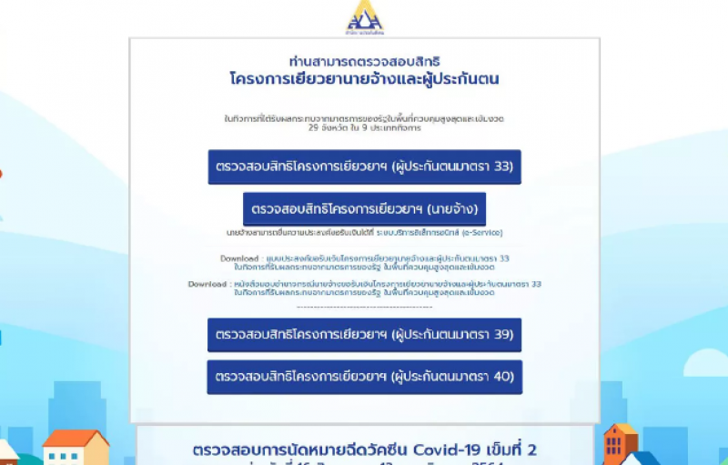 โดยประชาชน สามารถตรวจสอบสิทธิ โครงการเยียวยานายจ้างและผู้ประกันตนได้ที่นี่ www.sso.go.th ซึ่ง