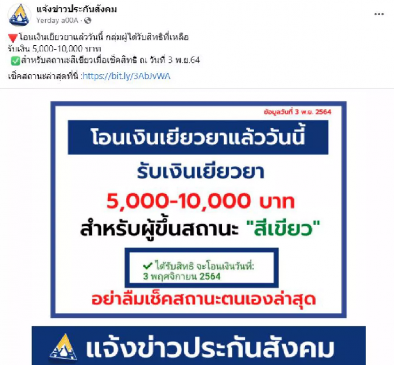 โอนเงินเยียวยาประกันสังคมแล้ว กลุ่มผู้ได้รับสิทธิที่เหลือ รับเงิน 5,000-10,000 บาท สำหรับสถานะสีเขียวเมื่อเช็คสิทธิ ณ วันที่ 3 พ.ย. 64