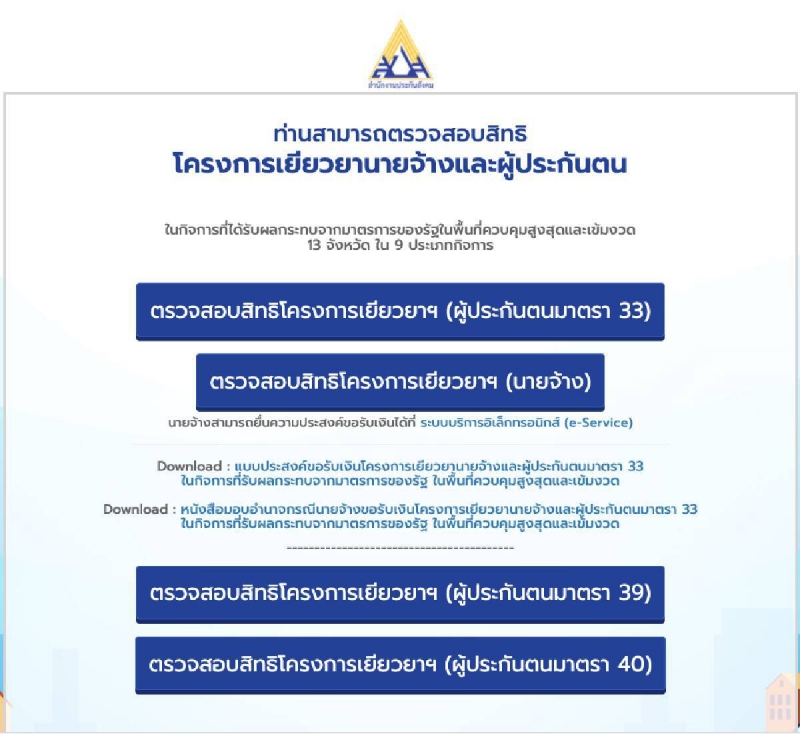 ให้ผู้ประกันตนมาตรา 33 มาตรา 39 และมาตรา 40 โดยผู้ประกันตนที่จะได้รับสิทธิเยียวยา ต้องอยู่ในพื้นที่สีแดงเข้ม 29 จังหวัด
