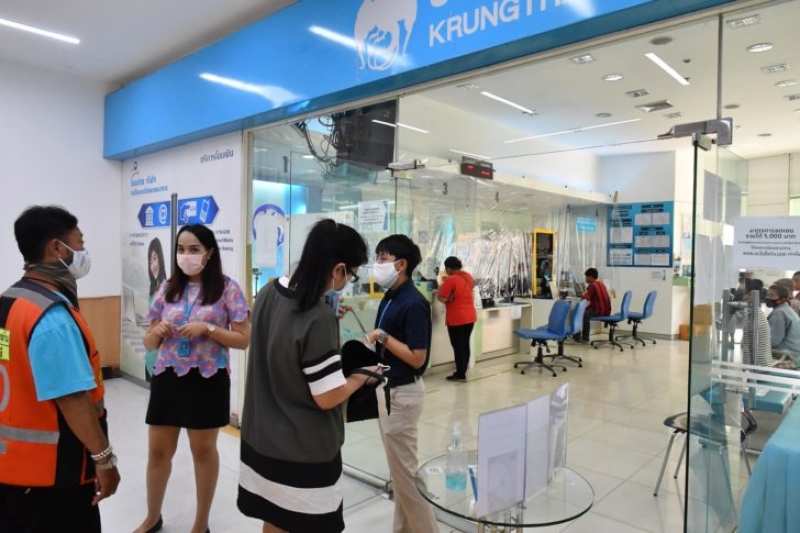 ซึ่งธนาคารปฏิบัติตามมาตรการป้องกันการแพร่ โดยขอจำกัดจำนวนช่องบริการ และจำนวนลูกค้าในสาขา