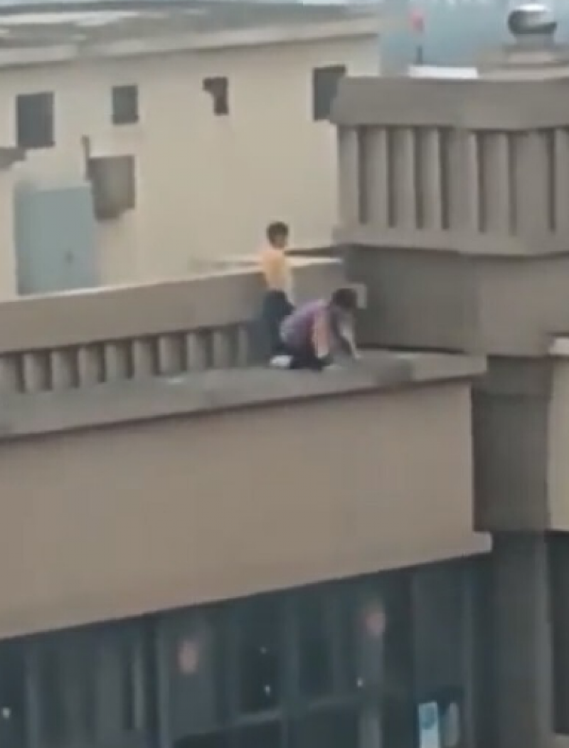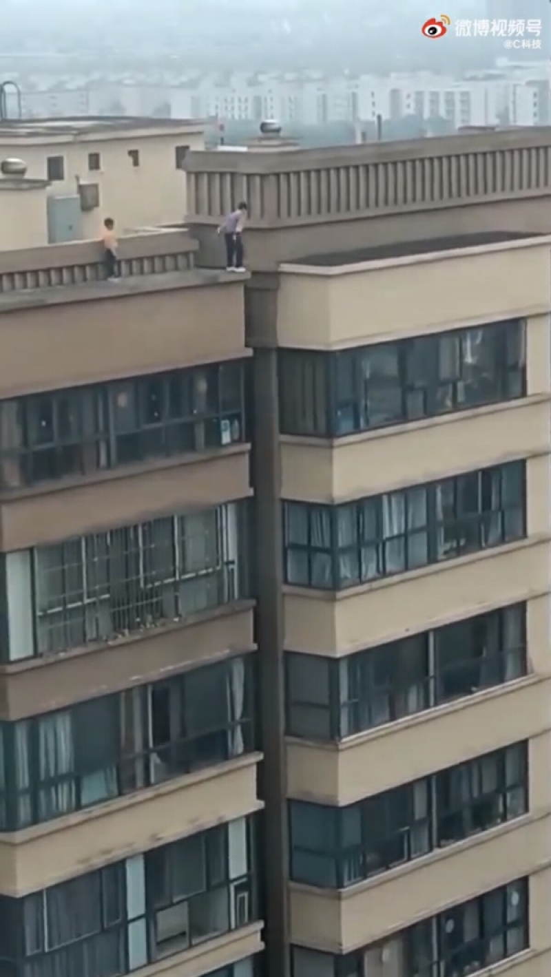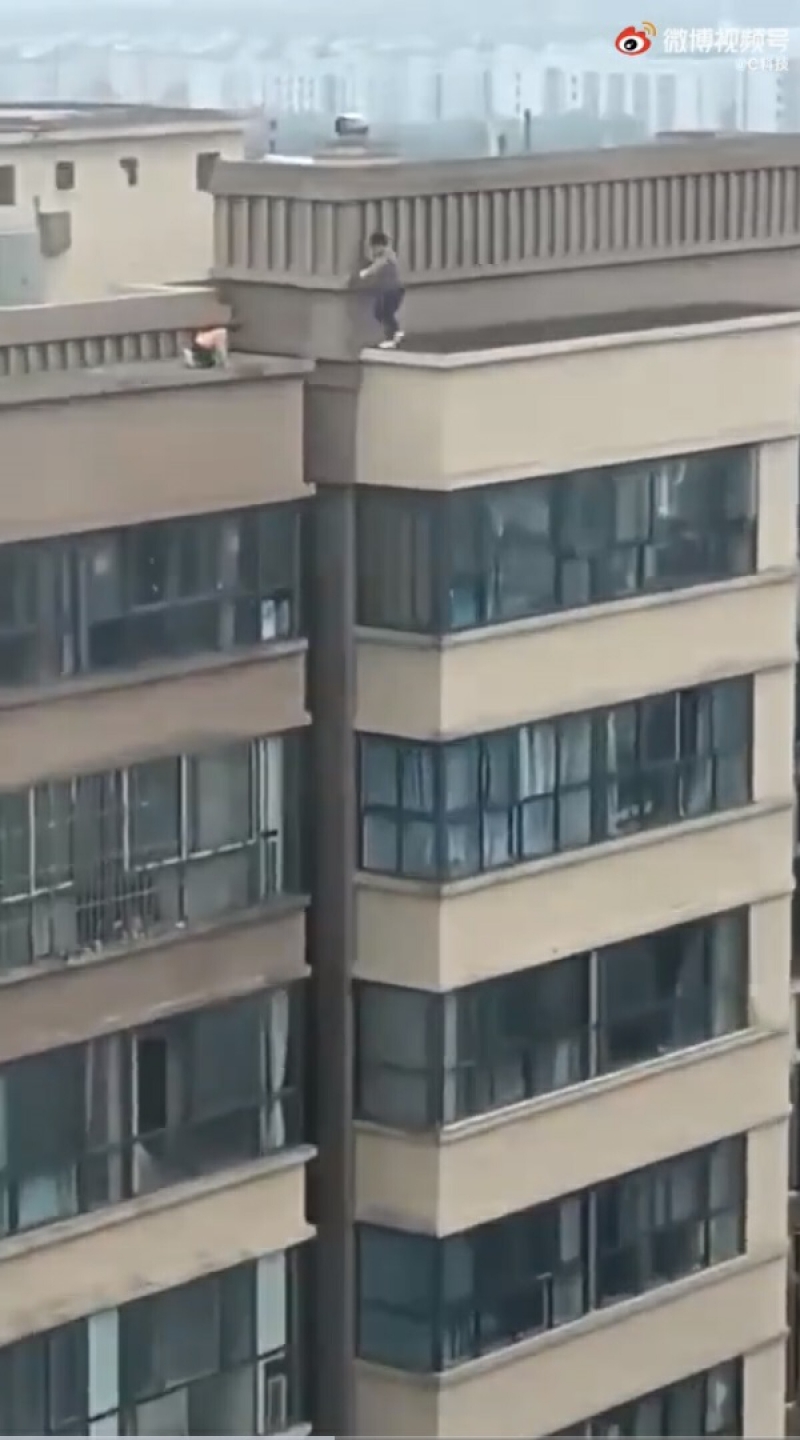 กำลังเล่นด้วยกันอย่างสนุกสนานอยู่บนดาดฟ้าของตึกสูง 27 ชั้น ในเมืองเซียนหนิง มณฑลหูเป่ย์ ประเทศจีน โดยได้เผยว่า