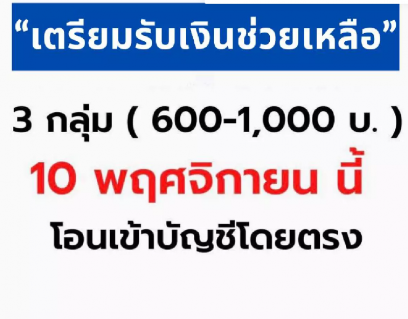 เช็กรายละเอียด 10 พ.ย. 64 รัฐฯโอนเงินช่วยเหลือบุคคล 3 กลุ่ม