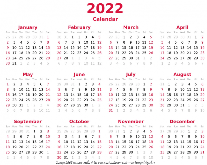 สถานประกอบกิจการภาคเอกชน กำหนดให้วันศุกร์ที่ 15 กรกฎาคม 2565 วันศุกร์ที่ 29 กรกฎาคม 2565 วันศุกร์ที่ 14 ตุลาคม 2565 และวันศุกร์ที่ 30 ธันวาคม 2565 เป็นวันหยุดเพิ่มเติมให้ลูกจ้างเป็นกรณีพิเศษ