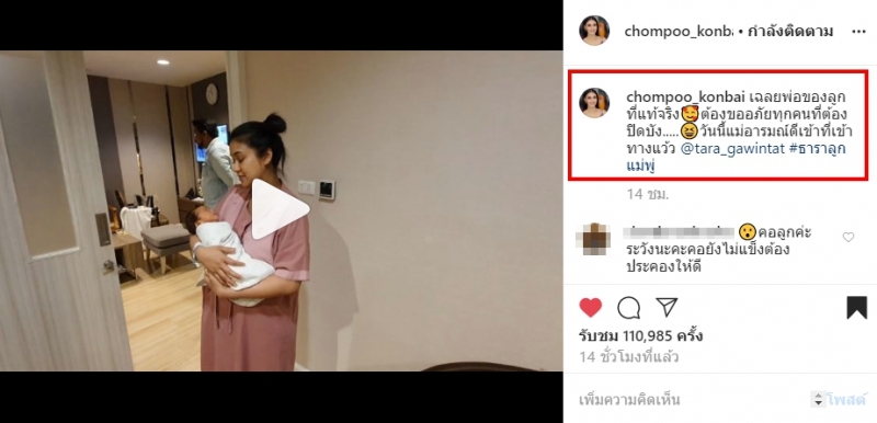 เเละล่าสุด ชมพู่ ก่อนบ่าย นั้นก็ได้โพสต์คลิปวีดิโอลงบนอินสตราเเกรม ขอโทษที่ปิดบังชาวโซเชียล พร้อมทั้งเฉลยพ่อของ น้องธารา ที่แท้จริง หลังบุตรมาหน้าไม่เหมือนสามี เพราะตาตี่มาก