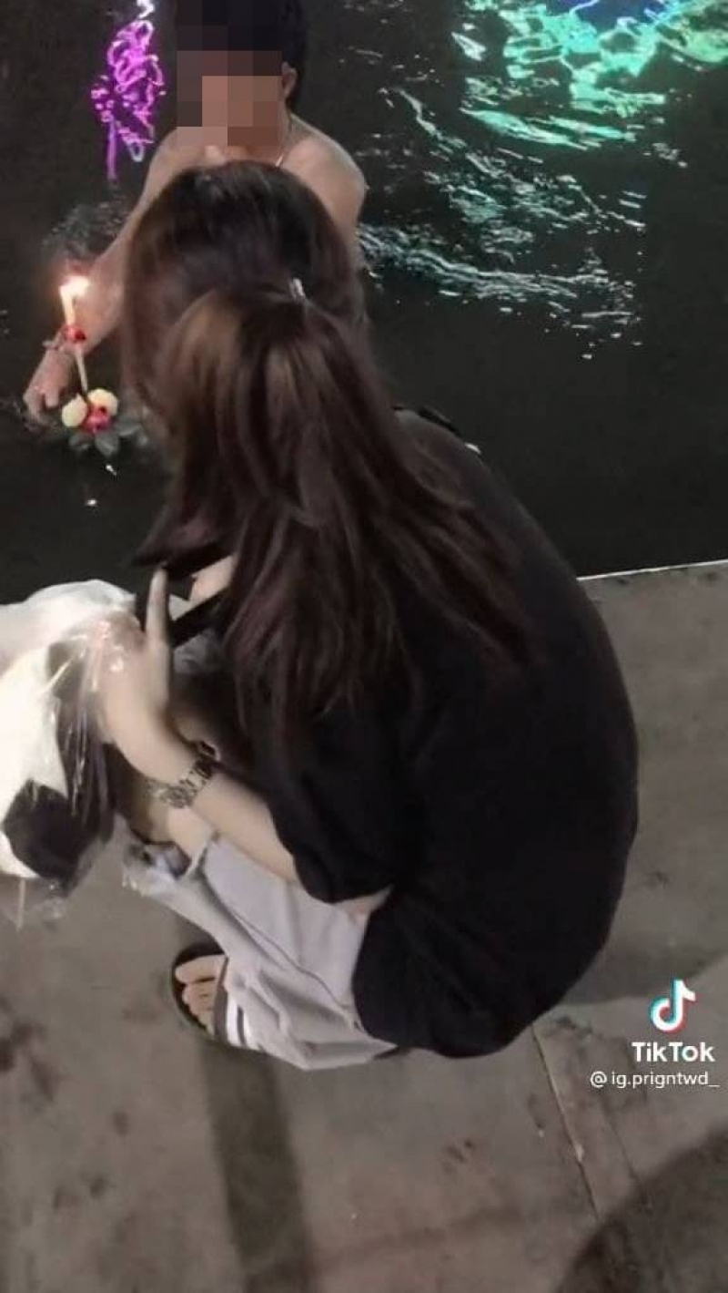 โดยเจ้าของคลิปบรรยายว่าเธอกำลังจะลอยกระทง และอธิษฐานขอให้สิ่งเลวร้ายลอยไปกับกระทง แต่ไม่ทันที่กระทงจะลอยจากไป