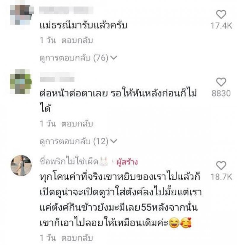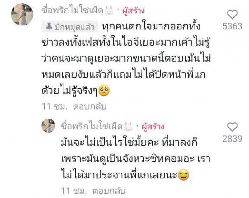หลังจากนั้นเจ้าของคลิปก็เข้ามาตอบเพิ่มเติมว่าชายคนนั้นหยิบกระทงตนไปดู น่าจะเปิดดูว่าใส่เงินลงไปไหม