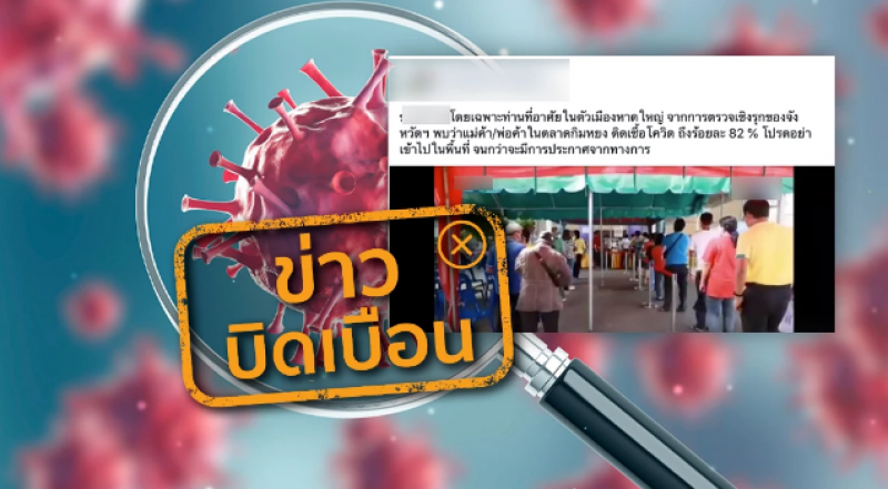 สรุป : ข่าวที่ถูกนำเสนอออกไปไม่เป็นความจริงแต่อย่างใด ในการตรวจเชิงรุกด้วยชุดตรวจ ATK (Antigen Test Kit) ในวันที่ 23 พ.ย. 2564 มีพ่อค้า แม่ค้า ครอบครัวผู้ประกอบการและผู้ประกอบการในบริเวณดังกล่าว เข้ามารับการตรวจทั้งหมด 356 คน ตรวจเจอผลที่เป็นบวกจำนวน 25 คน คิดเป็นร้อยละ 7 เท่านั้น