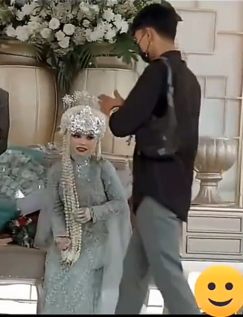 ก่อนที่รอยยิ้มของเจ้าบ่าวจะเลือนหายไปเมื่อีกฝ่ายเริ่มกระซิบอะไรที่ข้างหูเจ้าสาว