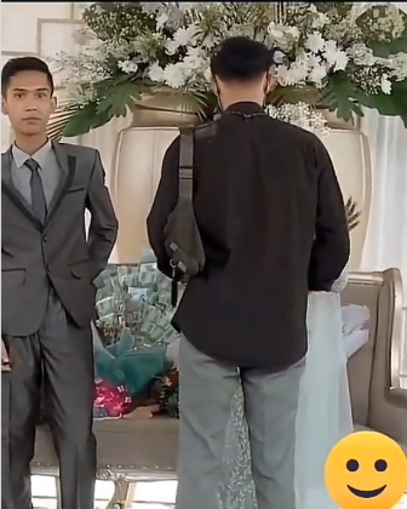 แต่จะแสดงท่าทีอะไรมากก็ไม่ได้ โดยหลังจากนั้นฝ่ายแฟนเก่าก็ยังเดินเข้ามาสวมกอดเจ้าบ่าว