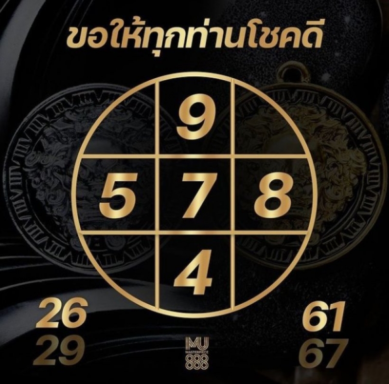 ขอให้ทุกท่านโชคดี พร้อมเลข 4 5 9 8 7 26 29 61 67 พร้อมแคปชั่น