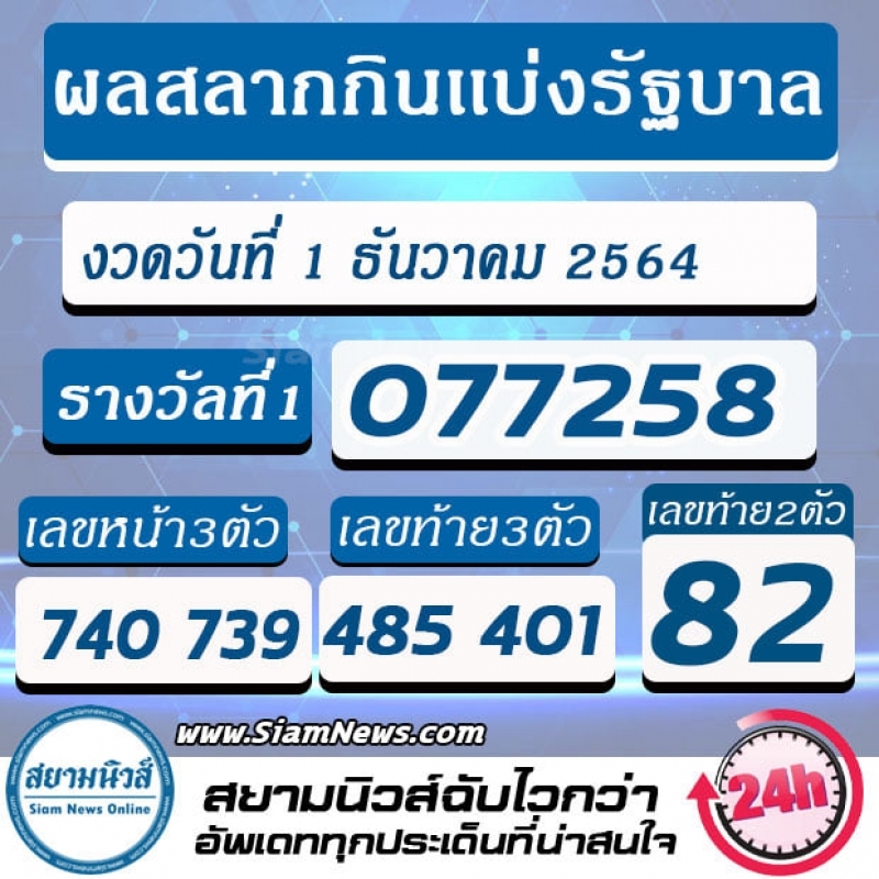 ผลสลากกินแบ่งรัฐบาล วันที่ 1 ธันวาคม 2564