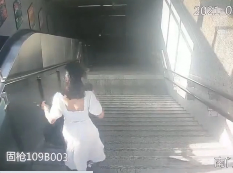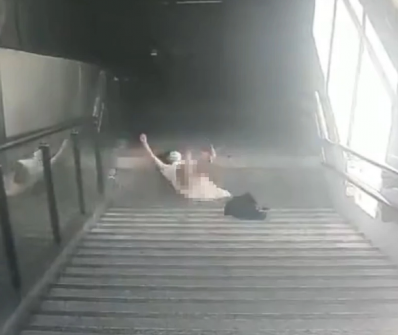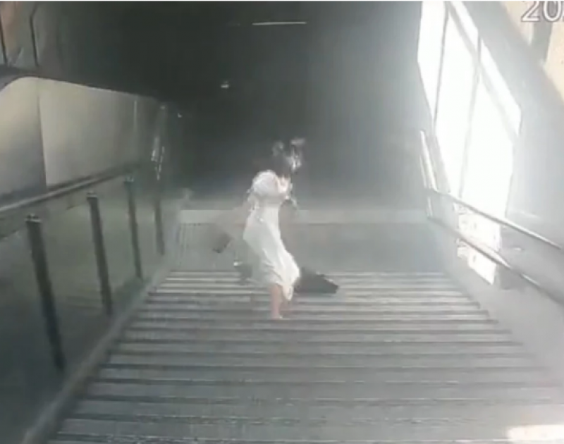 ในโซเชียลมีเดียได้เผยแพร่คลิปวิดีโอเหตุการณ์ที่เกิดขึ้น โดยเผยให้เห็นหญิงสาวรายหนึ่งในชุดเดรสสีขาว พร้อมรองเท้ามีส้น เดินลงบันไดสถานีรถไฟใต้ดิน