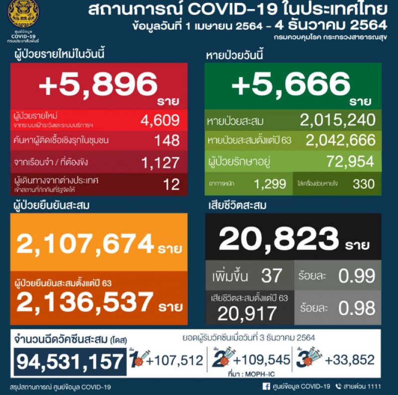 อัพเดทต่อเนื่อง เกาะติดสถานการณ์ cvวันนี้ 4 ธ.ค. 64 เกาะติดความคืบหน้า 10 จังหวัดติดcvสูงสุด