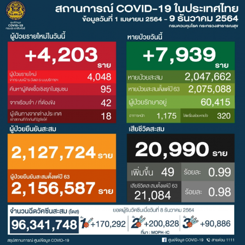 อัพเดทต่อเนื่อง เกาะติดสถานการณ์cvวันนี้ 9 ธ.ค. 64 เกาะติดความคืบหน้า 10 จังหวัดติดcvสูงสุด