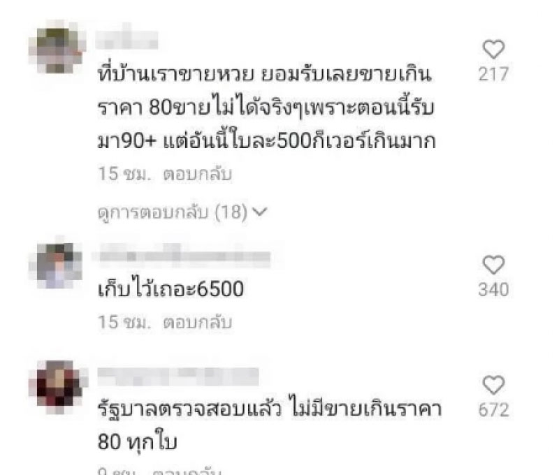 ทำให้ชาวเน็ตที่ได้เหห็นคลิปดังกล่าว ต่างความคิดเห็นอื่นๆ ที่ต่างก็ตกใจในราคาของลอตเตอรี่ชุดดังกล่าว