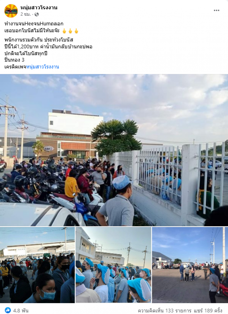 โดยเพจเฟสบุ๊ค หนุ่มสาวโรงงาน ได้ออกมาโพสต์ภาพและเรื่องราวพร้อมทั้งได้ระบุข้อความว่า