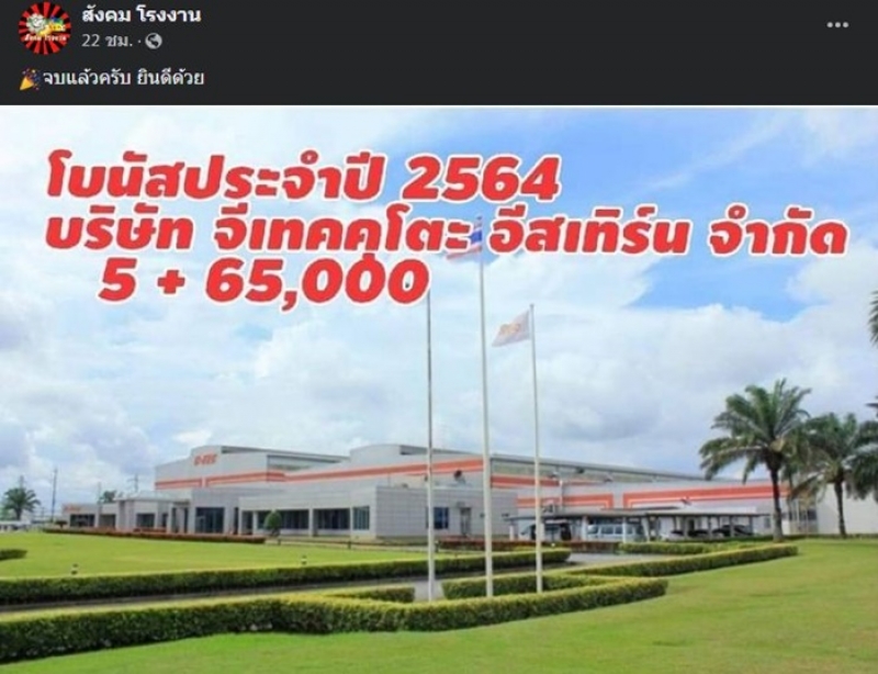 เมื่อวันที่ 21 ธันวาคม 2564 เพจเฟซบุ๊ก สังคม โรงงาน ได้โพสต์ภาพของ บริษัท จี-เทคคุโตะ อีสเทิร์น จำกัด