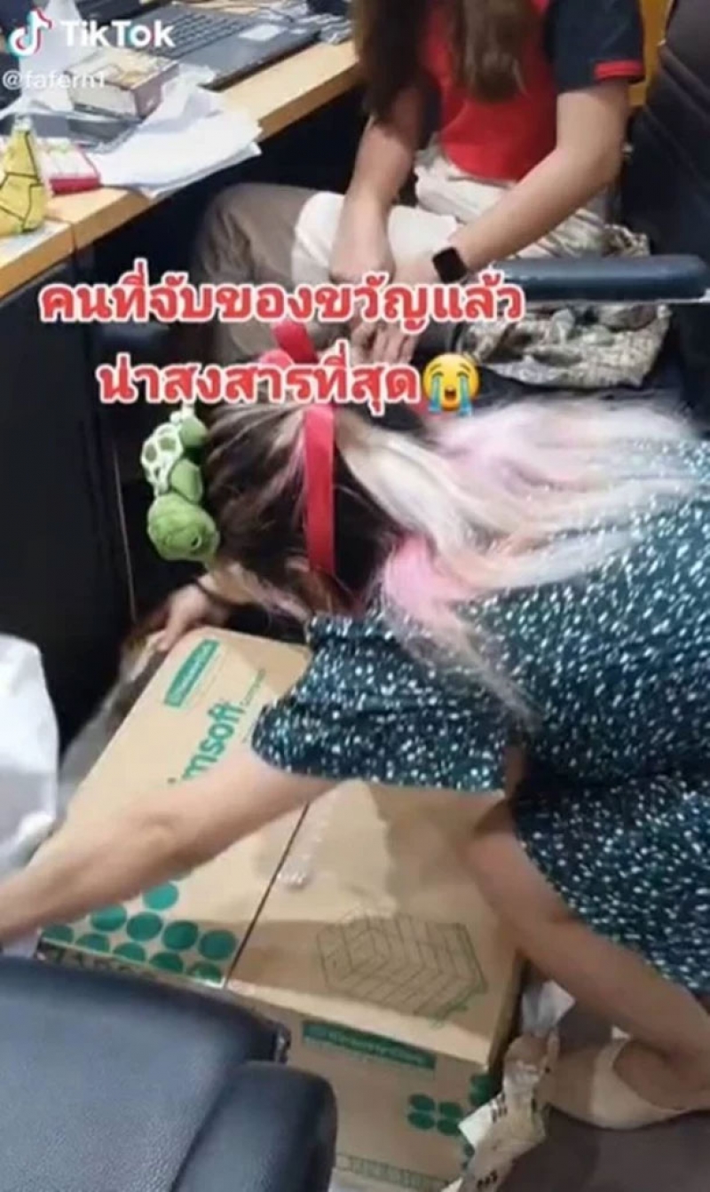 สาวดีใจ จับฉลากปีใหม่ ได้ของขวัญกล่องใหญ่ เปิดออกดูแทบทรุด